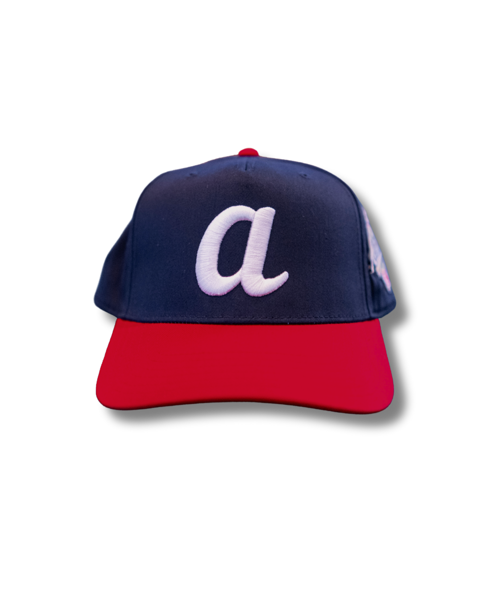 This Red White and Blue Baseball Cap features an embroidered design on the front and a custom patch sewn on the left side. It also has a snapback closure and is one size fits most.