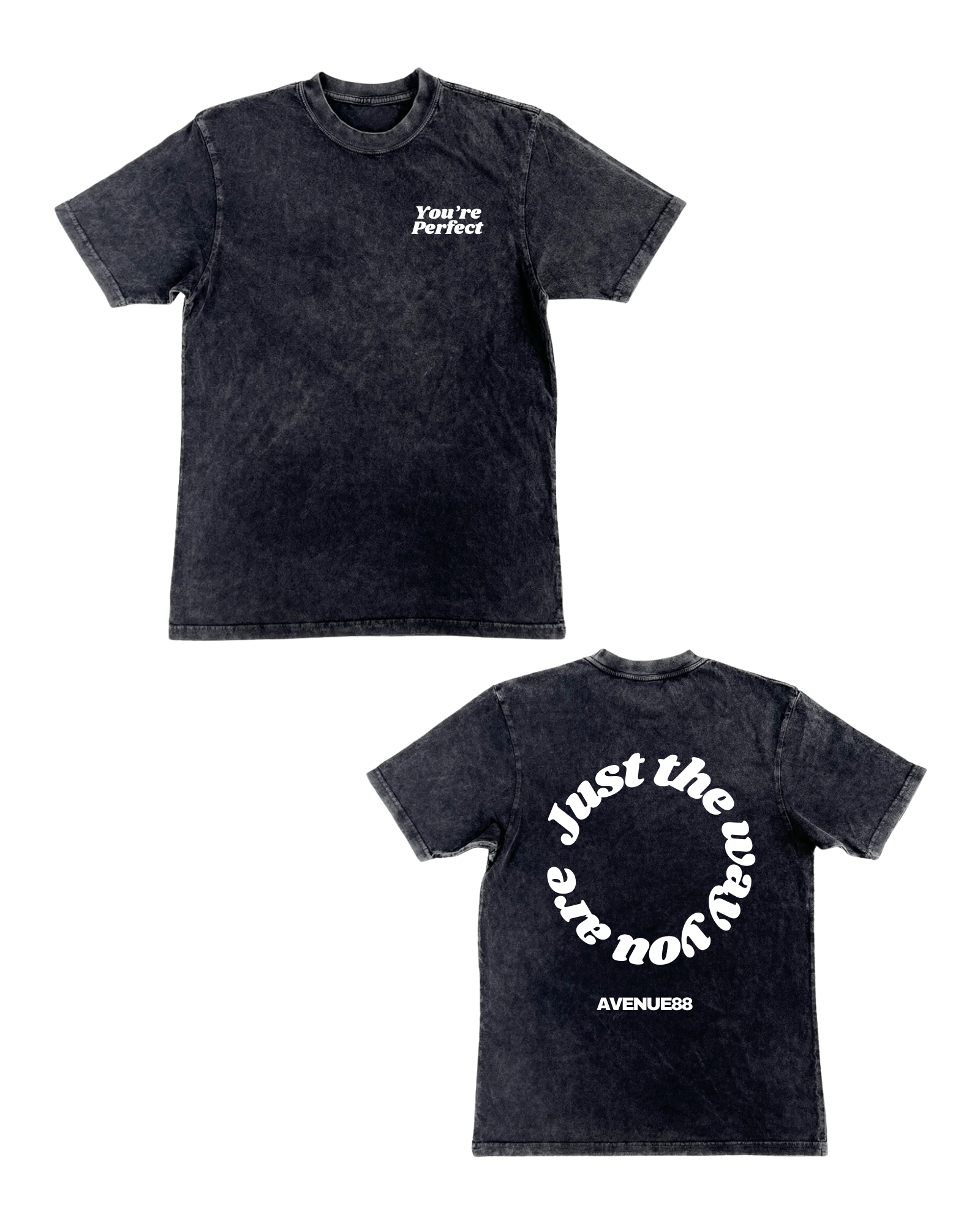 Our Vintage Black heavyweight You're Perfect T-shirt is made from a luxurious 6.5 oz ring-spun cotton that is both supremely comfortable and ultra-durable. A special mineral wash treatment gives it a vintage charm and unique finish.